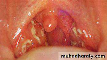 Presented with sudden onset fever, exudative tonsils or pharynx, tender enlarged ant. Cervical LN, absence of cough or rhinorrhea .Subsequent OM or peritonsillar abscess may occur.