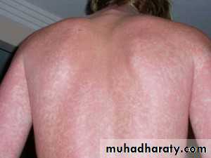 It occurs when the infecting strain of Strept. Produces pyrogenic exotoxine (erythrogenic toxin) & the patient is sensitized but not immuned to the toxin.It present with fever, nausea, vomiting, fine erythema punctate blanch on pressure (sandpaper) sparing the face