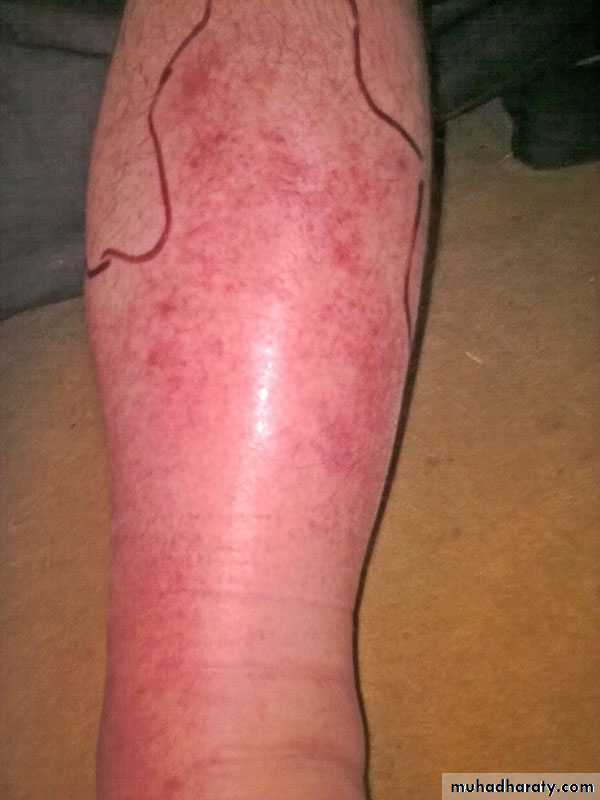 Red, Tender, edematous spreading lesion with definite raised border6