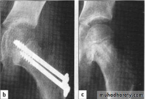 Treatment:These fractures almost always treated by early internal fixation although they unite quiet easily by conservative treatment.