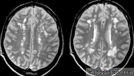 • Old MS plaque remains visible indefinitely as a focal area of hyperintensity (a lesion) on spin-echo (T2-weighted) and protondensity images