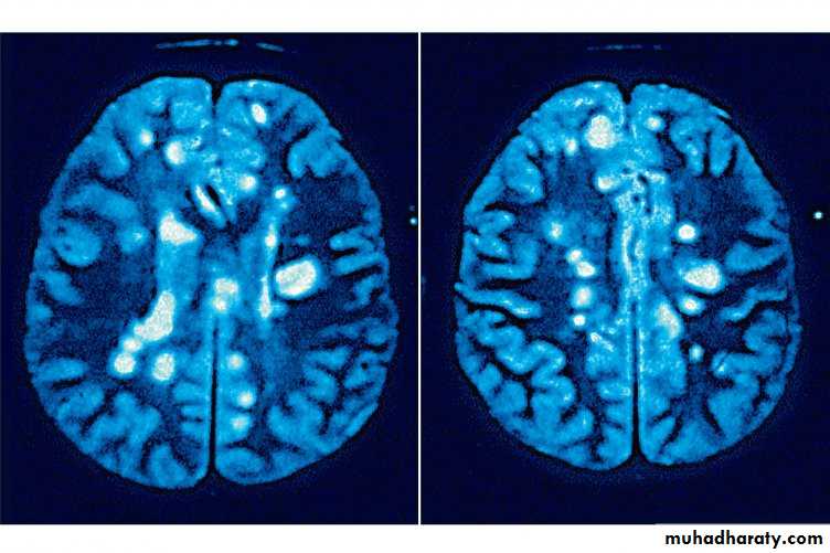 • - numerous MRI lesions during the early years of disease