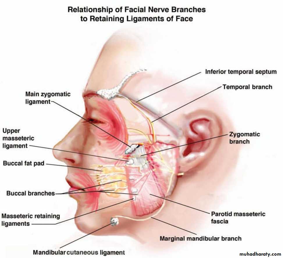 2. Facial process that extends anteriorly onto the masseter muscle .