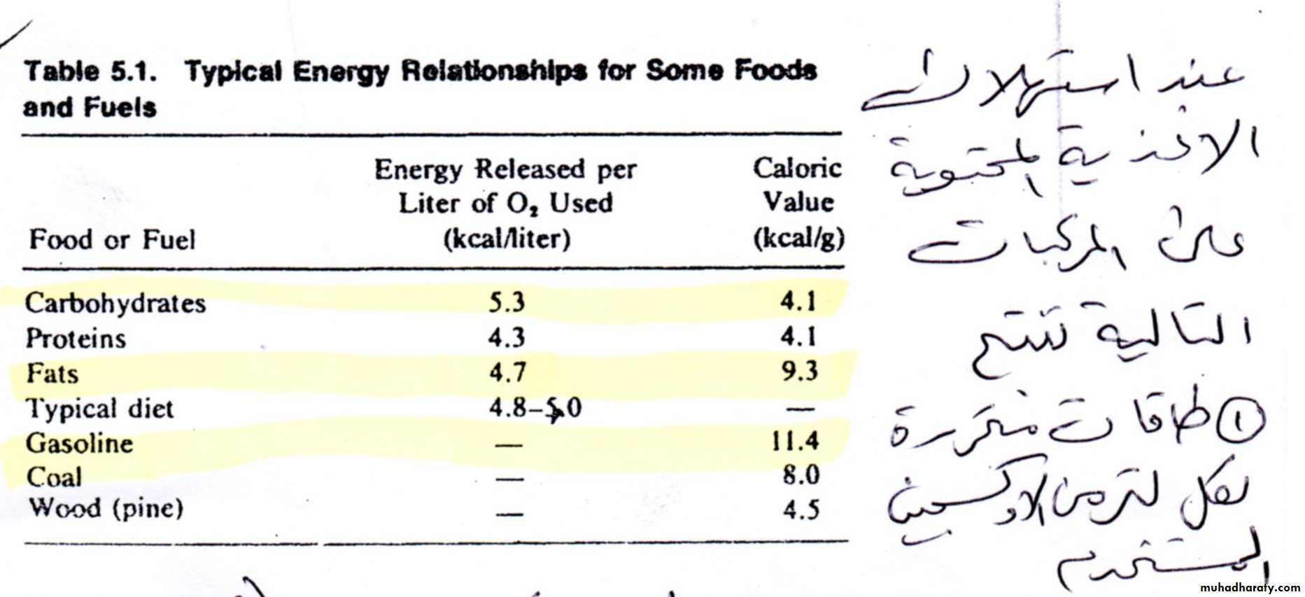 The total food energy consumed can be calculated since 4.8 to 5.0 Kcal are produced for each liter of oxygen consumed.