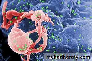 فيروس HIV-1 (باللون الأخضر) في خلية ليمفاوية