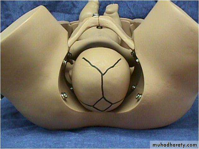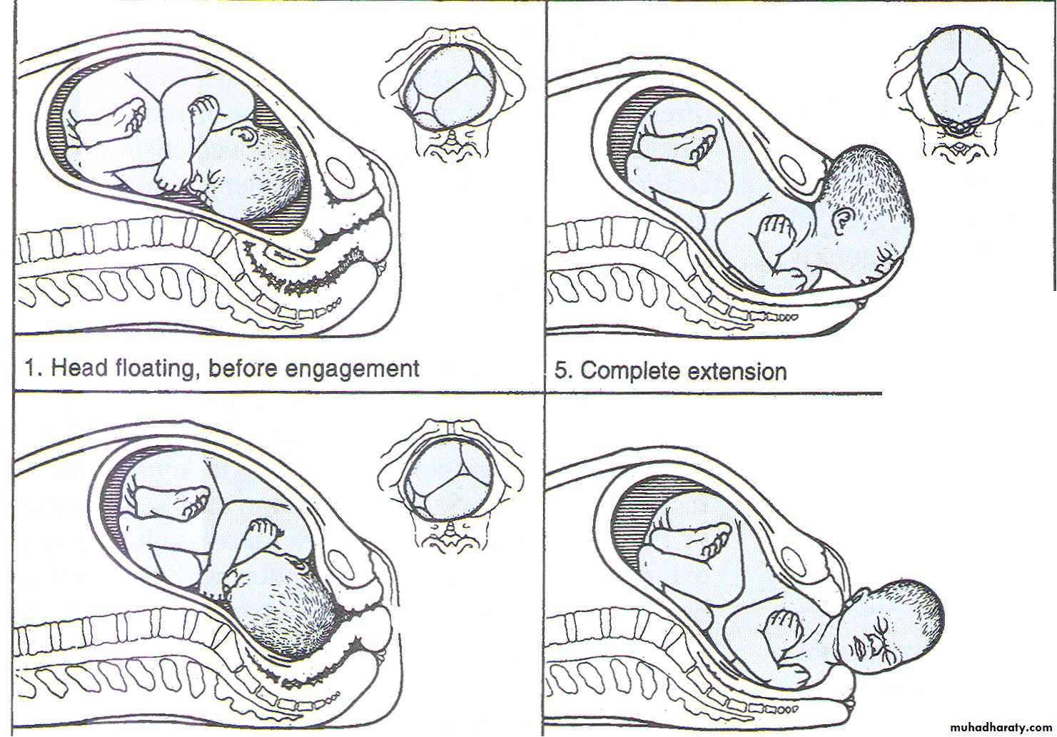 The fetal head may not always be completely flexed when it enters the pelvis.As the head descends into the narrower midcavity,flexion should occur.This is probably as a passive movement in part due to the surrounding structures.