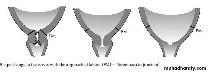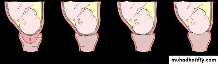 Effacement:is the process by which the cervix shortens in length as it becomes included into lower segment may start weeks before labor