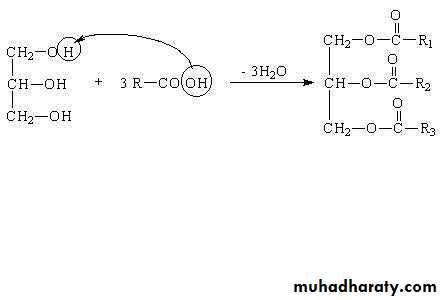 Glycerol Fatty acids Triglyceride or Triacyl glycerol (Fats and oils)