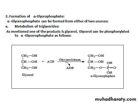 Any excess of fatty acids if present are esterified with α-Glycerophosphate which are produced during glycolysis.