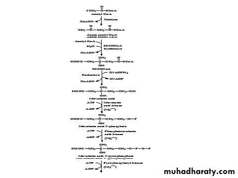 Synthesis of mevalonic acid (6 Carbon atoms)