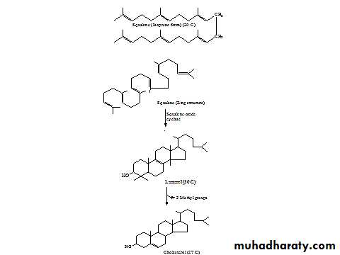 Conversion of Lanosterol to Cholesterol (27 carbon atoms).