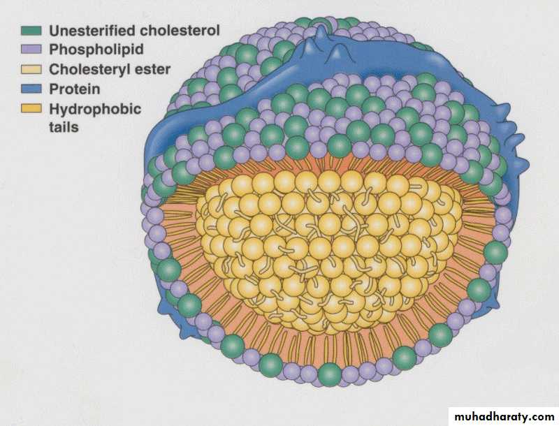 The lipoprotein formed contains variable amount of triglycerides, phospholipids, cholesterol, and