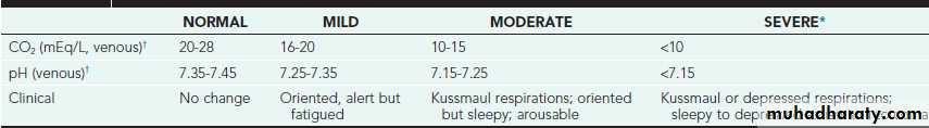 DKA may be arbitrarily classified as mild, moderate, or severe