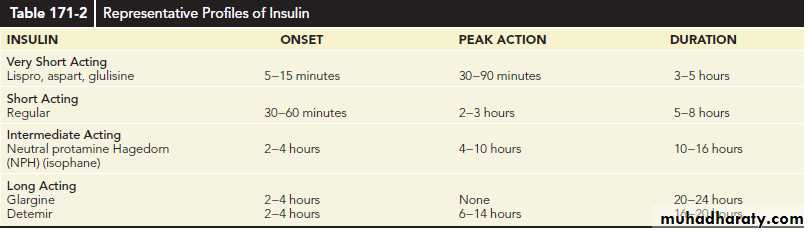 Currently available insulin types are classified based on their duration of action as rapid, short, intermediate, and long acting.
