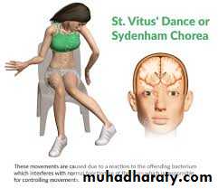 • Cerebral involvement causing spasmodic involuntary movements (Sydenham Chorea, St. Vitus dance)