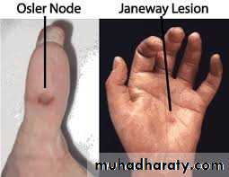 • Osler's nodes (small, tender, subcutaneous nodules that develop in the pulp of the digits). Named after Sir William Gale: (1849 1919). They are caused by immune-complex deposition.