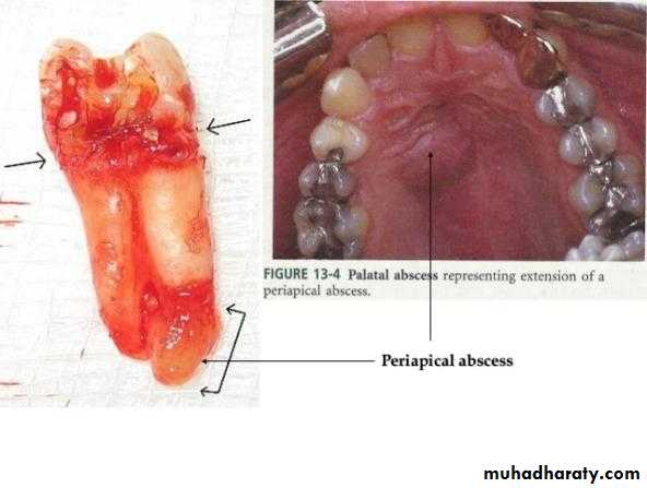 • Pus seeks a pathway of least resistance through alveolar bone.• Additional feeling of elongation and fullness.