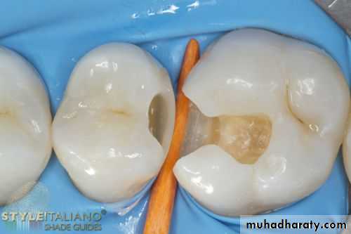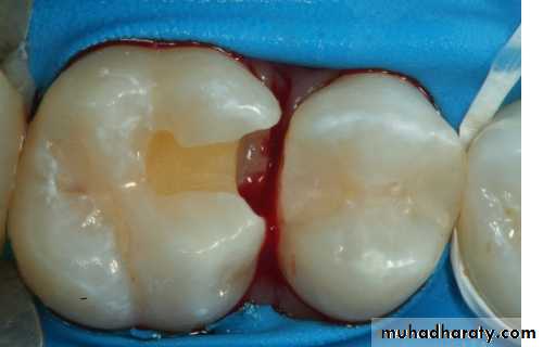 When restoring a small, cavitated, proximal lesion in a tooth with neither occlusal fissures nor a previously inserted occlusal restoration, a proximal box preparation without an occlusal step has been recommended.To maximize retention, preparations with facial and lingual walls that almost oppose each other are recommended.