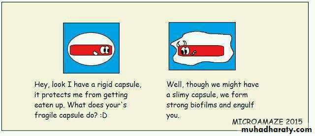 A slime layer is less tightly bound to the cell wall and is usually thinner than a capsule. When present, it protects the cell against drying, helps trap nutrients near the cell, and sometimes binds cells together as in dental plaque.