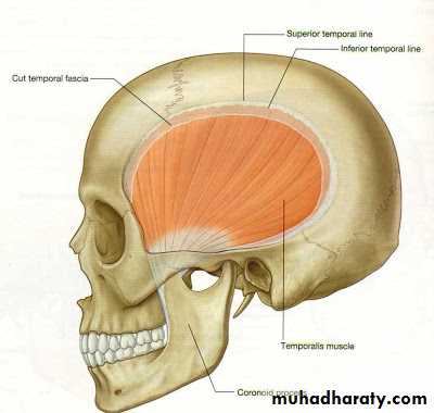 Temporalis1. Origin from temporal fascia and temporal fossa from temporal lines to infratemporal crest.