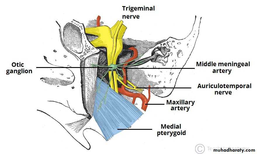 2. Mandibular nerve ( CN V3) and its branches, chorda tympani, and otic ganglion .