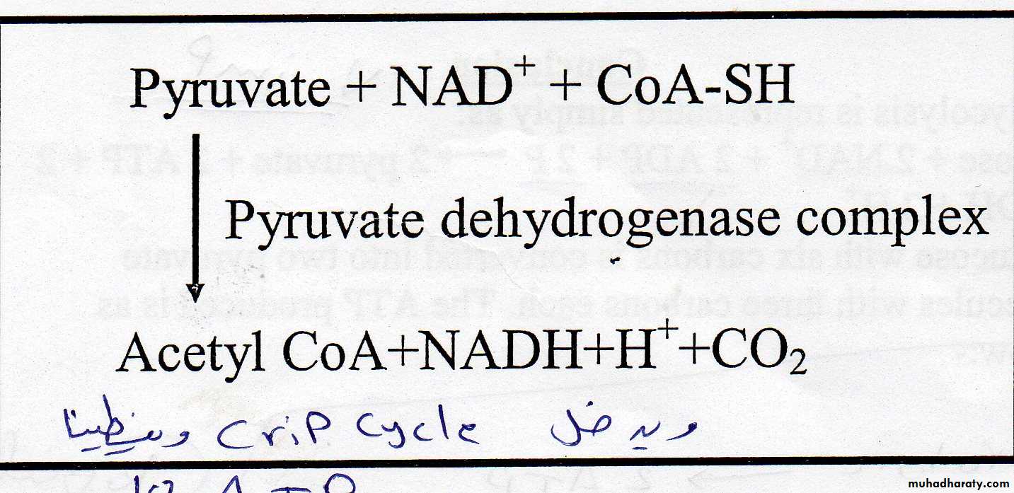 Depending on availability of aerobic or anaerobic conditions :1. Under aerobic condition it is transported from the cytoplasm to mitochondria via special pyruvate transporter where it is oxiditively decarboxylated into acetyl Co A (active acetate) by several different enzymes working sequentially in a multienzyme system called collectively as pyruvate dehdrogenase complex system.