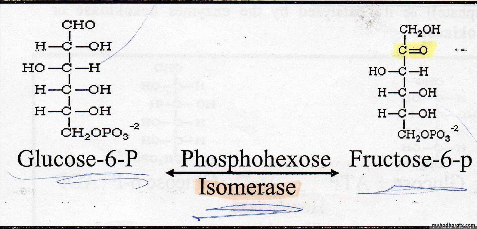 The glucose-6- phosphate is changed into an isomer ,fructose -6- phosphate . This means that the number of atoms is unchanged , but their position have changed(aldose to ketose conversion) this reversible reaction is catalyzed by phosphohexose isomerase (phosphoglucisomerase)enzyme.Reaction 3 phosphate ester synthesis