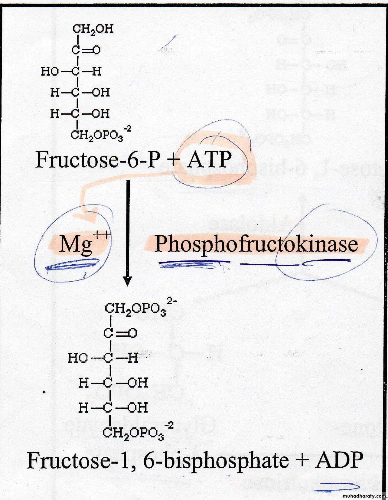 This reaction is virtually identical to step 1 fructose 6 phosphate is reacted with phosphate from ATP to make fructose 1-6 bisphosphate again this reaction using ATP in the presence of Mg ion. this reaction is irreversible catalyzed by phosphofructokinase enzyme and it is the rate limiting step and has regulating role in glycolysis.Reaction 4 split molecule in half