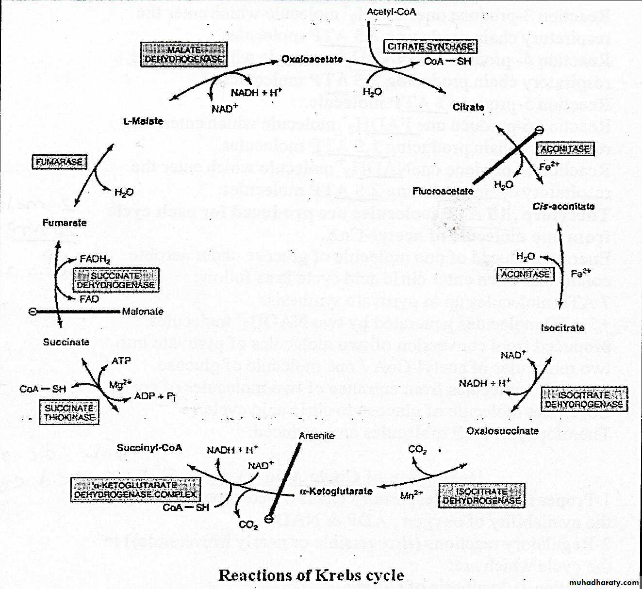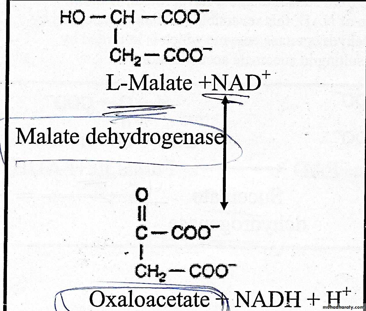 The final reaction of Kreps cycle where dehydrogenatin of malate in the presence of NAD˖ninto oxaloacetate +NADH+H˖. this is reversible reaction is catalyzed by malate dehydrogenase.The oxaloacetate produced in this reaction condense with acetyl Co A (reaction 1)and so the cycle continue again.