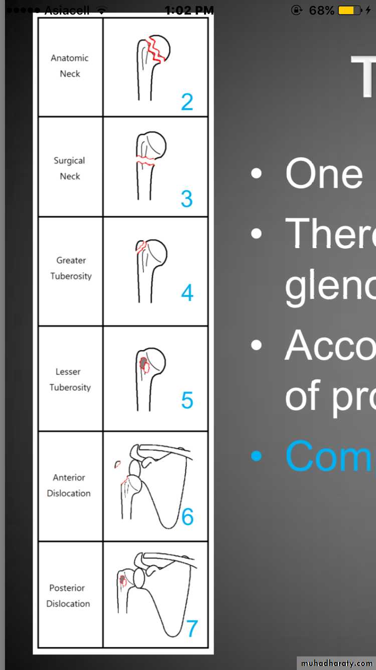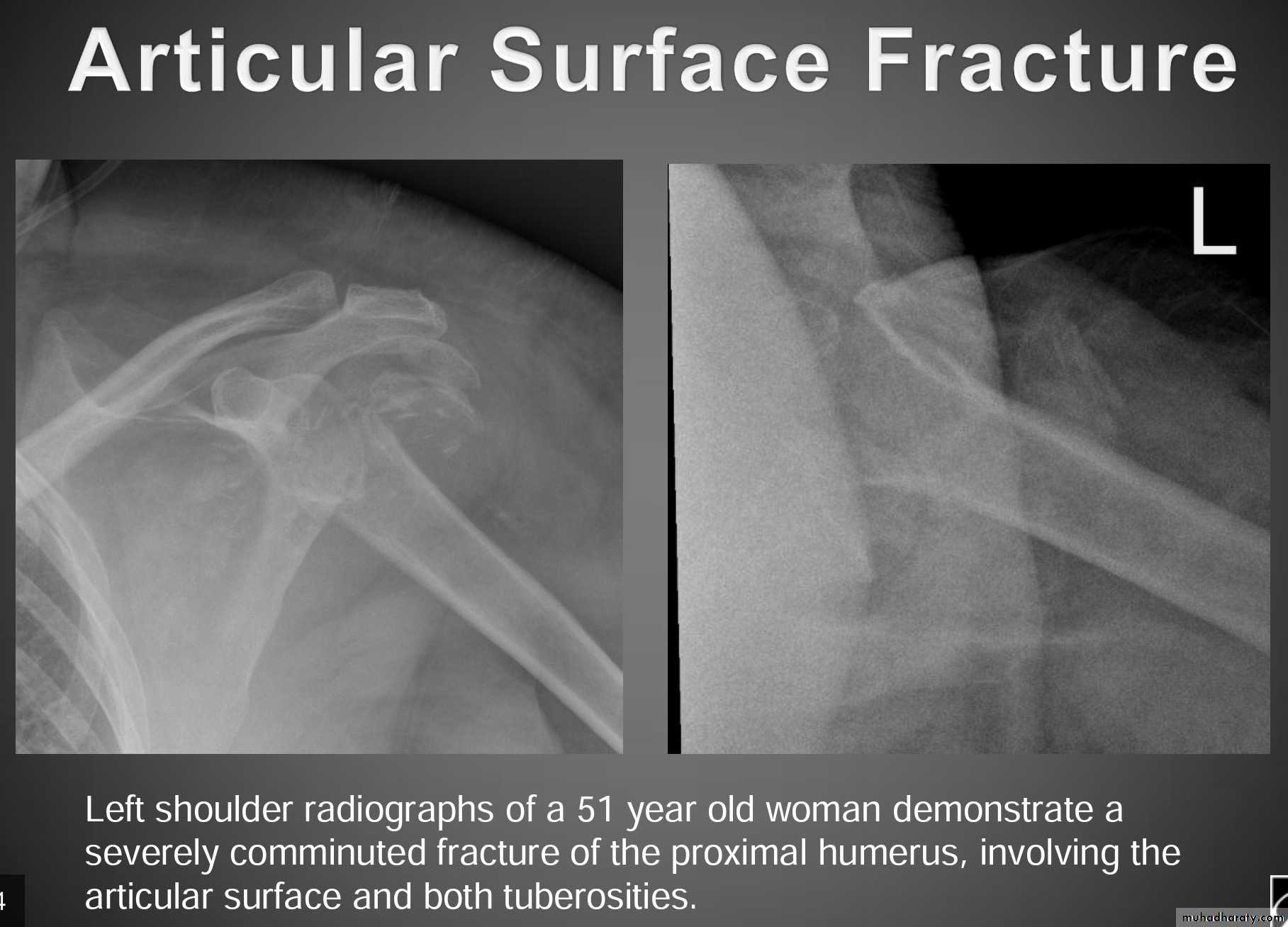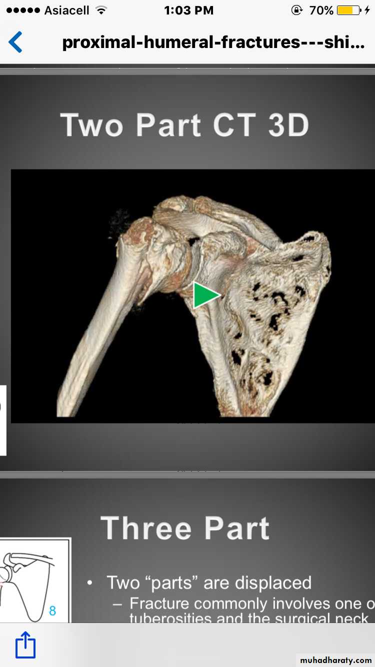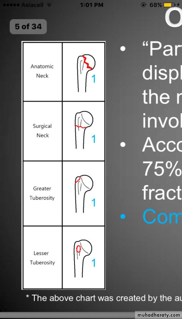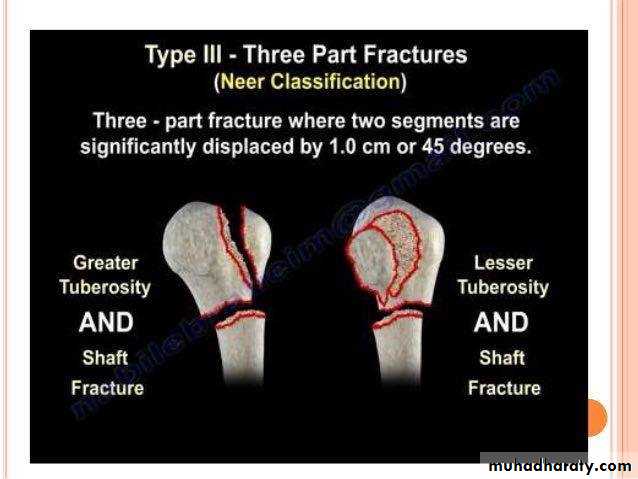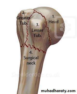 20% of proximal humeral fractureFracture lines involve 2-4 parts