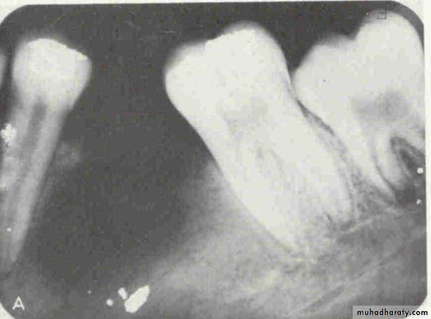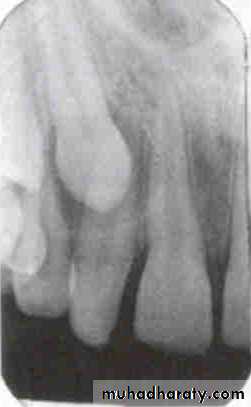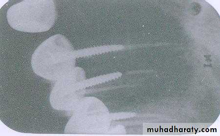 This is the buccal canal. The tube head goes distally from the canine film to the premolar film and the gutta percha moves mesially to be positioned over the lingual canal which has the threaded post.