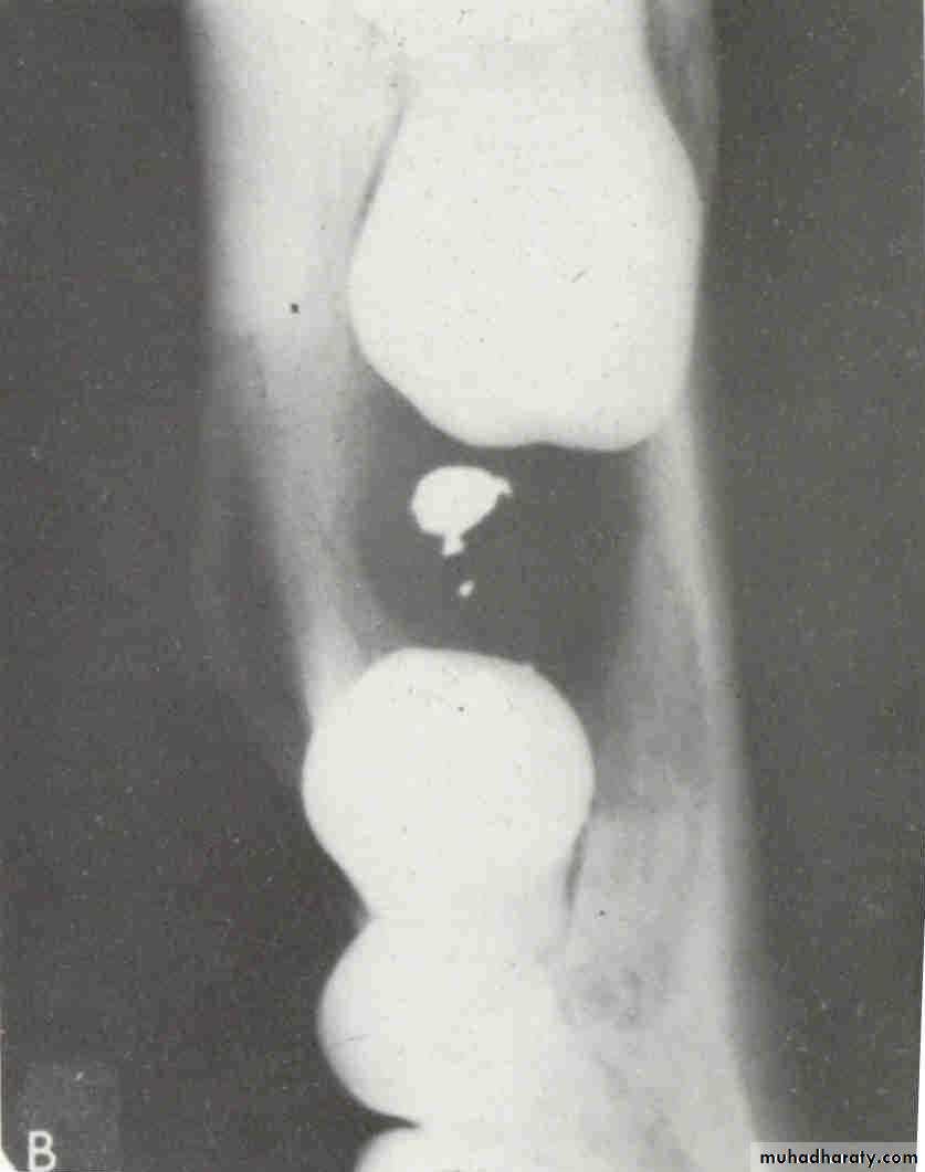 premolar filmIs the radiopaque object identified by the arrows located on the buccal or the lingual?