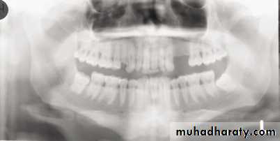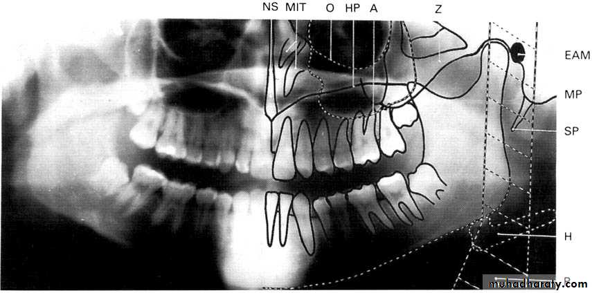 3.Tomographic movement & the distance between the focal trough zone & the film produce distortion & magnification ( X 1.3 ).