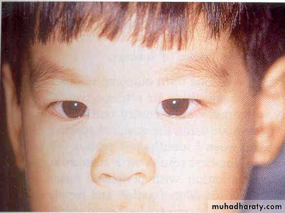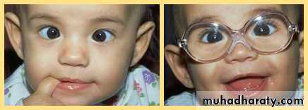 (d) The refractive error is usually normal for the age of the child (about +1.50 D).