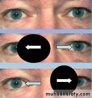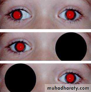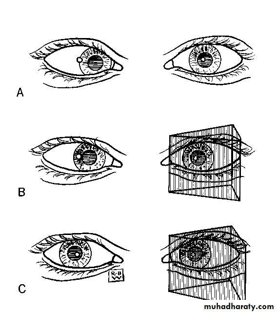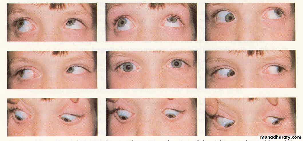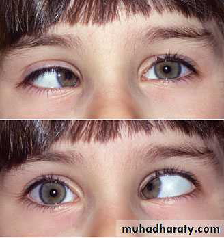 (b) Fixation in most infants is alternating in the primary position and cross fixating in side gaze, so that the child uses the right eye in left gaze and the left eye in right gaze.