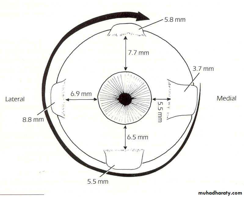 Six Extra ocular muscles surround each eye:Medial Rectus
