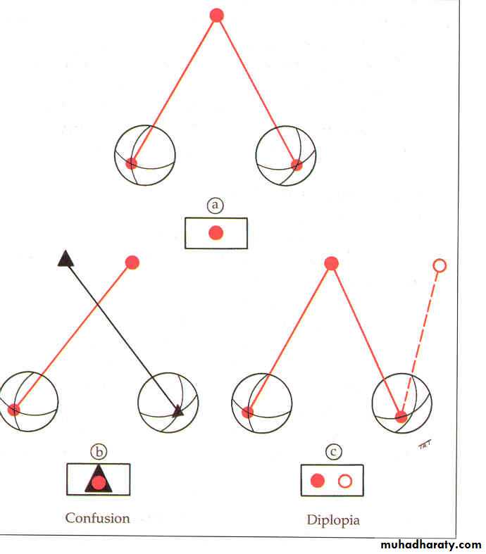 3. Confusion is the simultaneous appreciation of two superimposed but dissimilar images caused by stimulation of corresponding points (usually foveae) by images of different objects.