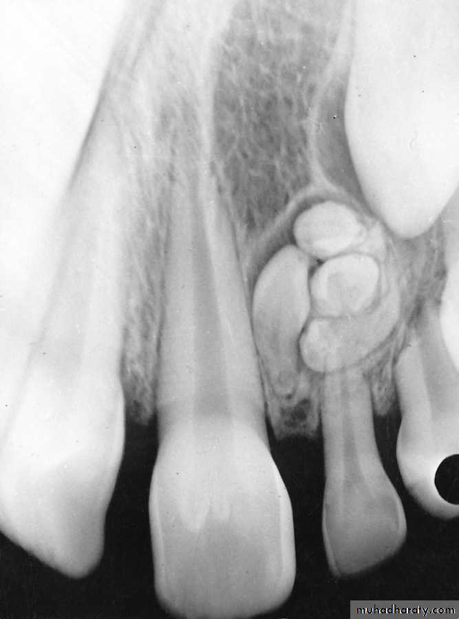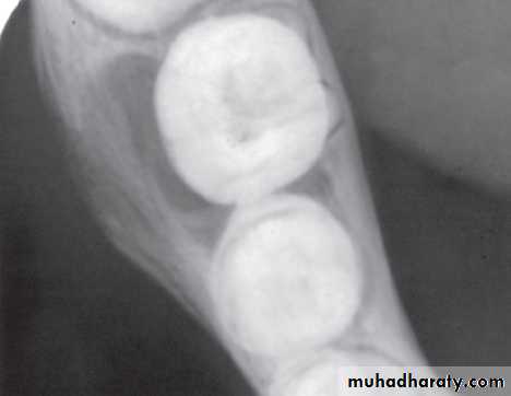 buccal cortical plate and the associated bone loss with this cyst.Occlusal radiograph