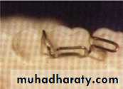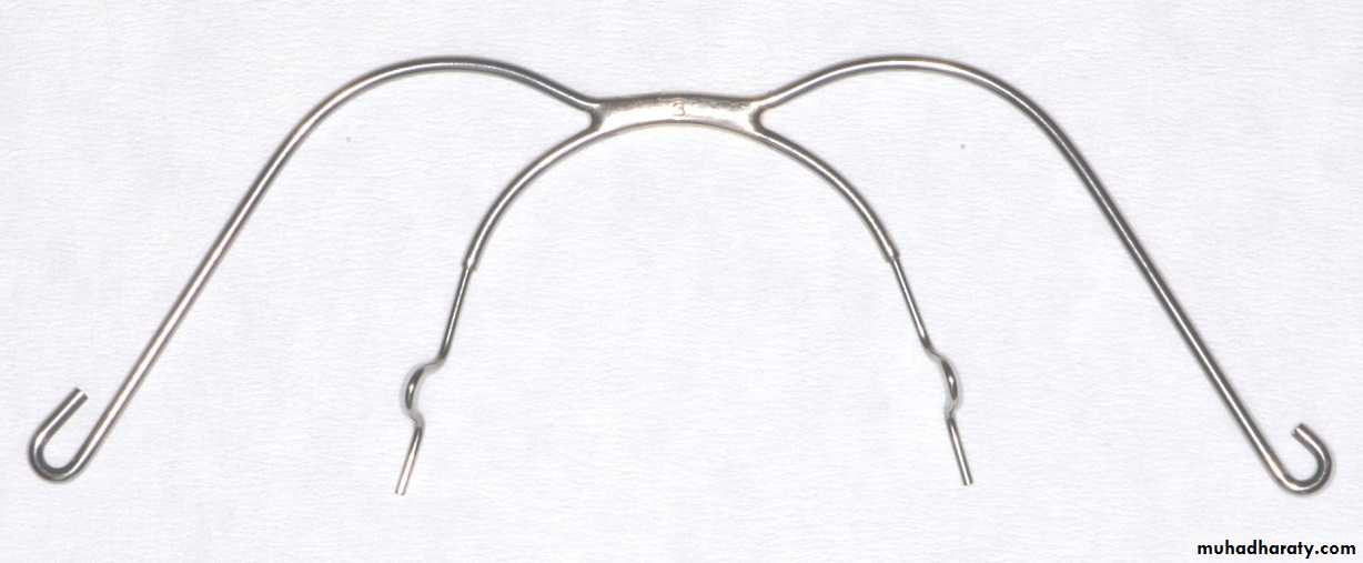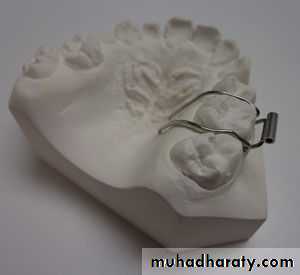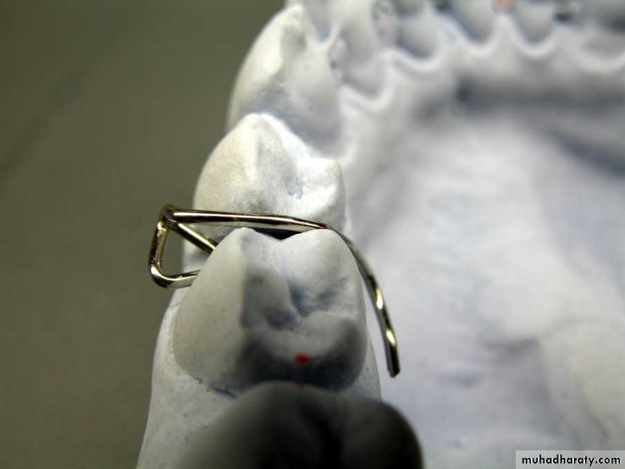 a) Adams with single arrowhead : This type are indicated in partially erupted tooth ,which usually is last erupted molar . The single arrow head is made to engage the mesio-proximal undercut of the last erupted molar . The bridge is modified to encircle the tooth distally and ends on the palatal aspect as a retentive arms .b)Adams with J hook :
