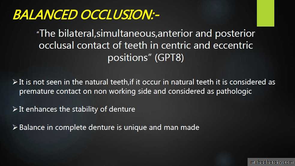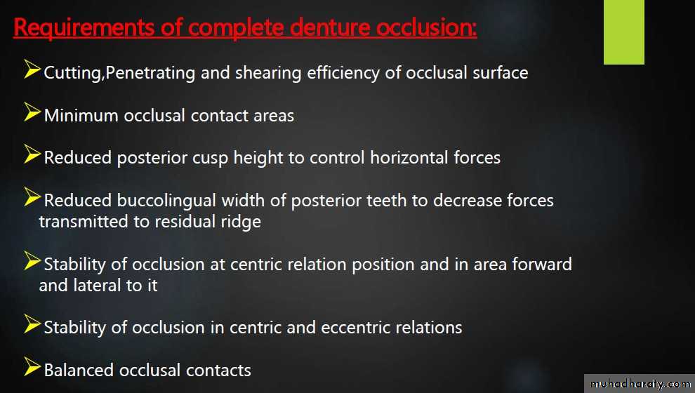 OCCLUSAL SCHEMS IN COMPLETE DENTURE