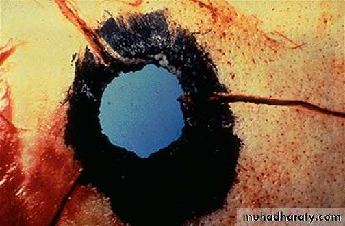 ج- يكون أتجاه الأنسجة في حواف المدخل الى داخل الجسم توافقاً مع أتجاه مسير المقذوف.