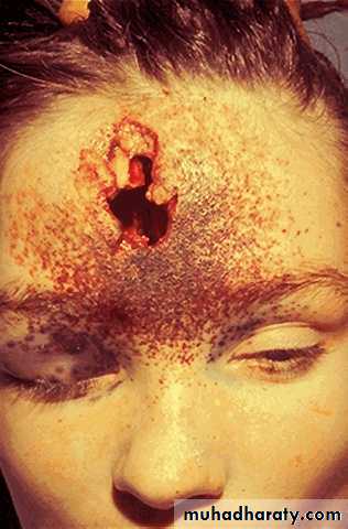 أ- أضرار المقاذيف النارية في الجلد .