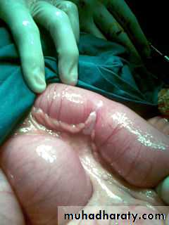 3-intestinal resection for ischemic or gangrenous segment or severe contused segment and for multiple perforation close together