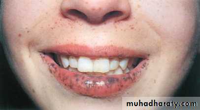-melanosis of the oral mucous membrane and lip( melanin spot some time on digit and perianal spot
