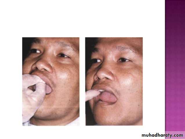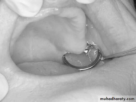 • Ask the patient to raise the tongue. If the tongue is cramped, the denture will begin to rise immediately. As the tongue moves it tries to expand laterally and whenever the tongue moves the denture will move.