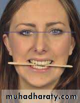 Index finger is placed on incisive papilla with relaxed upper lip & amount of finger covered gives indication of length of upper lip.Lower lip is better guide for vertical orientation of anterior teeth. Incisal edges of lower canine & cusp tip of lower first premolar are even with corner of mouth when mouth is slightly open.