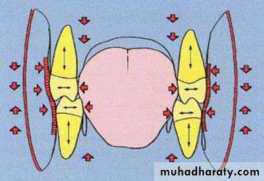 • Tilt the lower trial denture outward from the canine region to test the retention of the opposite retro molar pad.