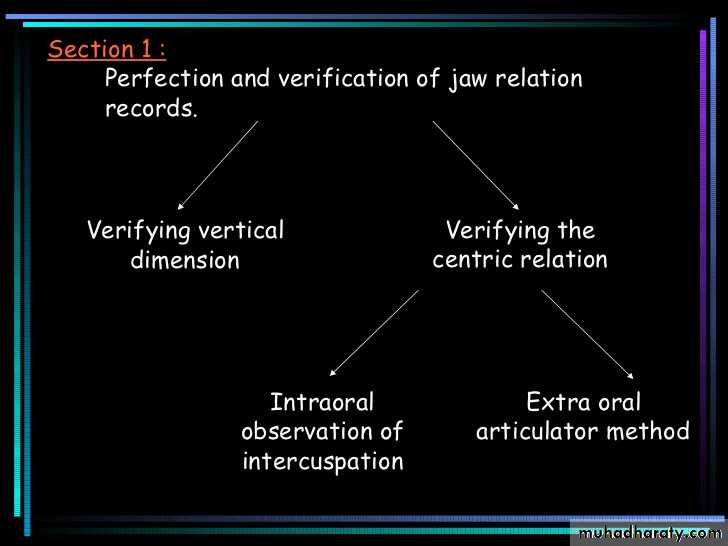 • To check and verify the established maxillomandibular relationship:• Verify that centric occlusion and centric relation coincide.