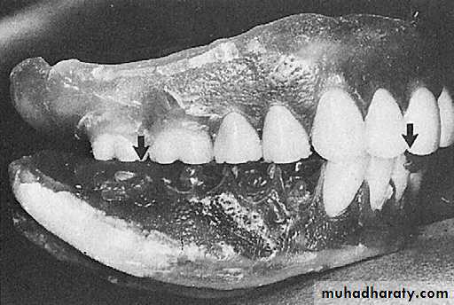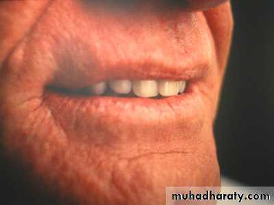 • Excessive lip support causes stretched lips, tendency of lips to dislodge dentures during function, elimination of normal contours of lips, philtrum & sulci.