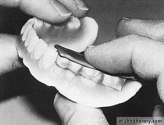 • If there are any undercuts present in the cast, these undercuts should be relieved to avoid scratching of the cast by the trial denture bases.